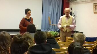 Le 3 avril, les 12 élèves volontaires, encadrés par Mmes Panzani et Gebelin, ont bénéficié d'une journée de répétition avec Daniel San Pedro, comédien et metteur en scène, co-directeur de la Compagnie des Petits Champs.