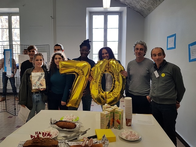 Enfin, l'Antenne Jeunes Amnesty du lycée a clôturé cette rencontre avec un gâteau de célébration des 70 ans de la Déclaration Universelle des Droits de l'Homme.